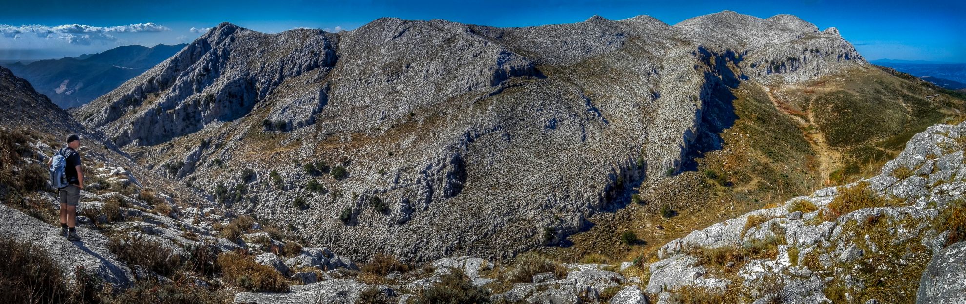 La vista che ci si apre di fronte, anche in questo caso, è magnifica e sterminata. Valli, picchi, gole, magnifiche distese verdi in lontananza e possiamo ammirare una parte del percorso che ci attende.